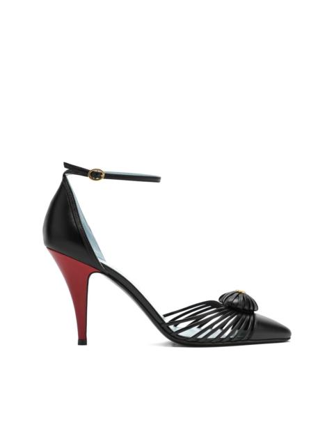 VLOGO Moon 20 embellished leather-trimmed fishnet and mesh slingback pumps