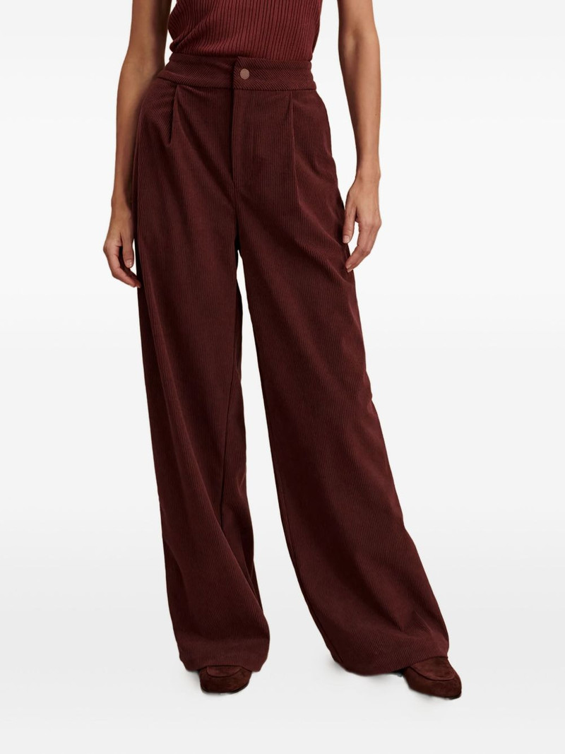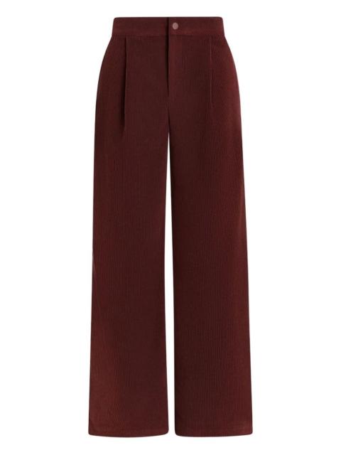 Drawstring-waistband wide-leg mid-rise stretch-woven trousers