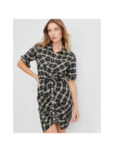 NWT Veronica Beard Sierra Plaid Flannel Ruched Shirt Dress Black Ecru Sz 2 $498