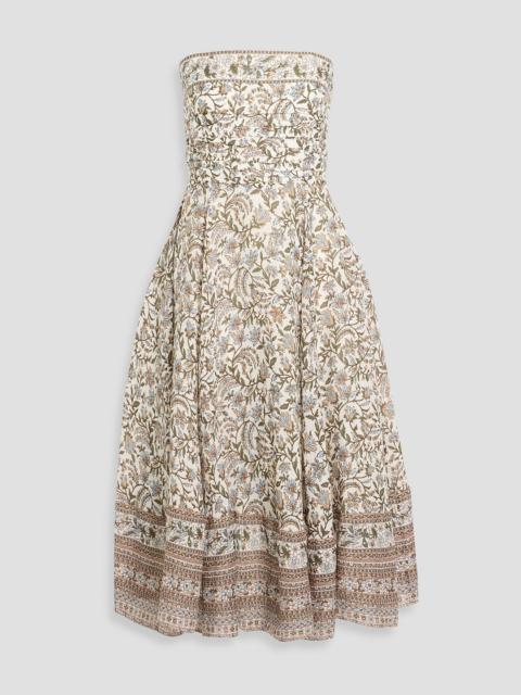 Lana strapless floral-print ramie midi dress