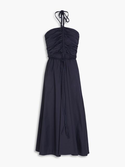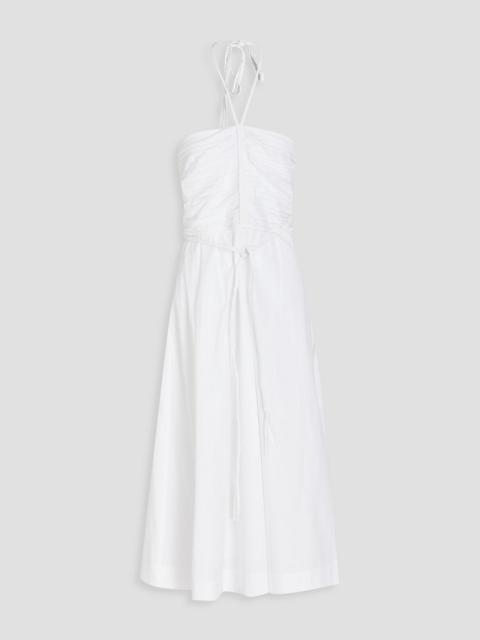 Tucker ruched stretch-cotton poplin halterneck midi dress