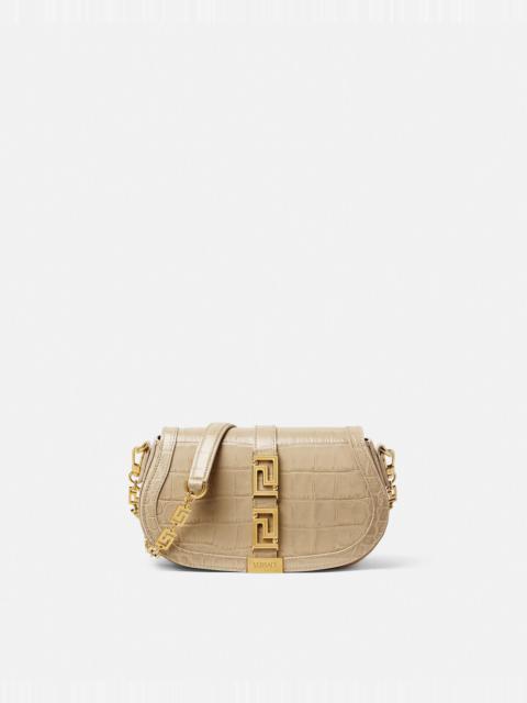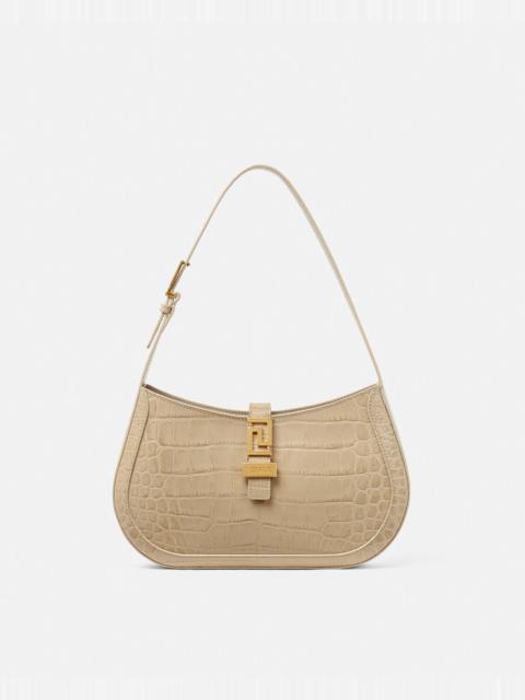 Croc-Effect Greca Goddess Shoulder Bag