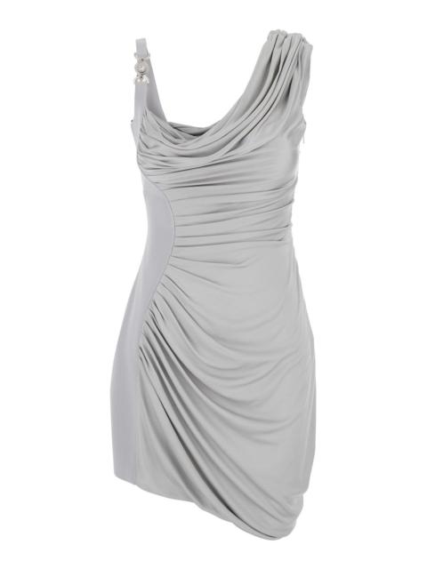 Versace Women Grey Draped Mini Dress With Medusa '95 Detail In Viscose Woman