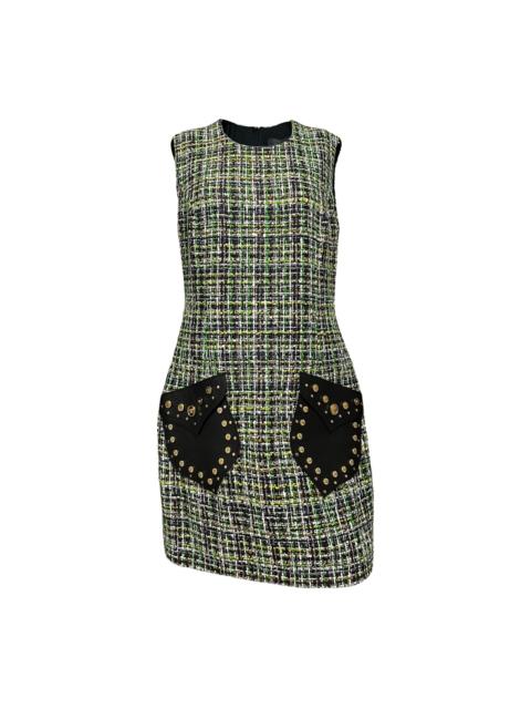 VERSACE Resort 2020 Studded Leather Tweed Mini Dress