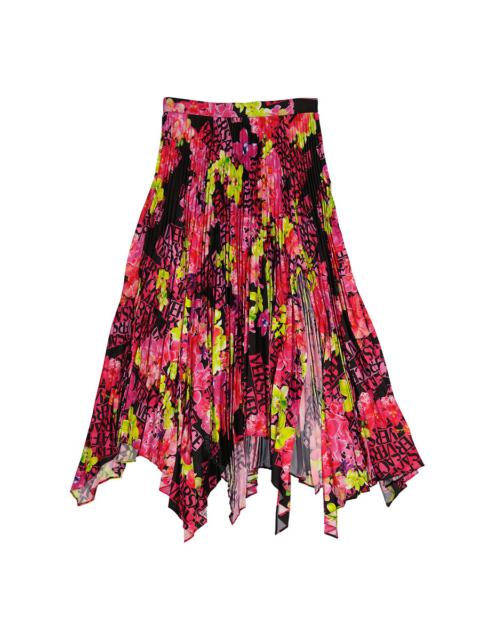 Versace Orchid Print Pleated Crepe De Chine Midi Skirt