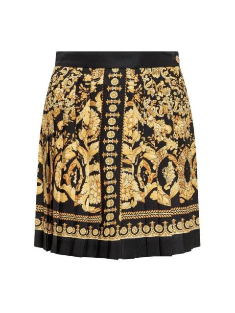Versace Women Black And Golden Pleated Skirt With Baroque Print All-Over In Silk Woman