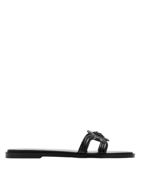 Versace Chain Leather Slide Sandals, Brand Size 37 ( US Size 7 )