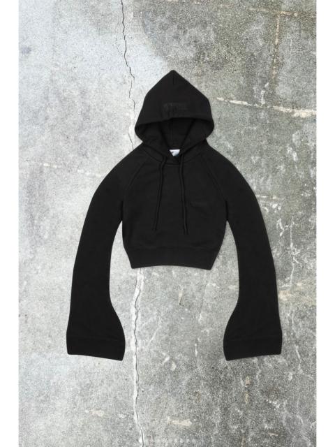BLACK FLARED SLEEVE CROPPED HOODIE