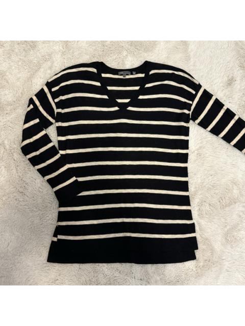Vince V-Neck Striped Cotton Lightweight Sweater
