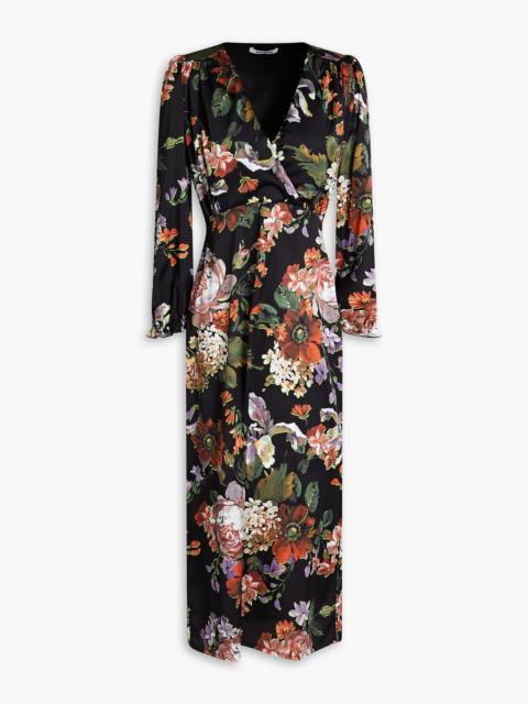 Floral-print stretch-satin midi dress