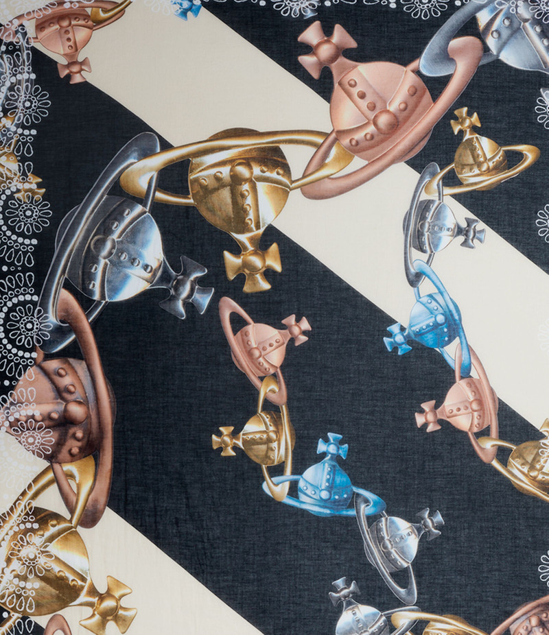 Elevate your accessory collection with Vivienne Westwood scarves, an exquisite component of our luxury women's accessories range. Each Vivienne Westwood scarf exudes a unique blend of rebellious charm and timeless elegance, ideal for those who seek to make a statement with their style.