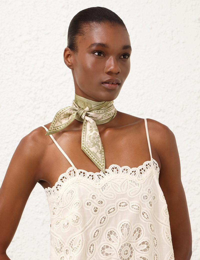 Elevate your accessory game with Zimmermann scarves, crafted to perfection for discerning women. These exquisite scarves effortlessly blend chic sophistication with luxurious materials, creating an ideal addition to your fashion ensemble. Discover our curated collection of Zimmermann scarves, designed to add a touch of elegance and versatility to any outfit.