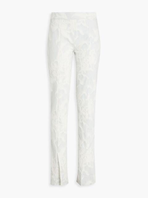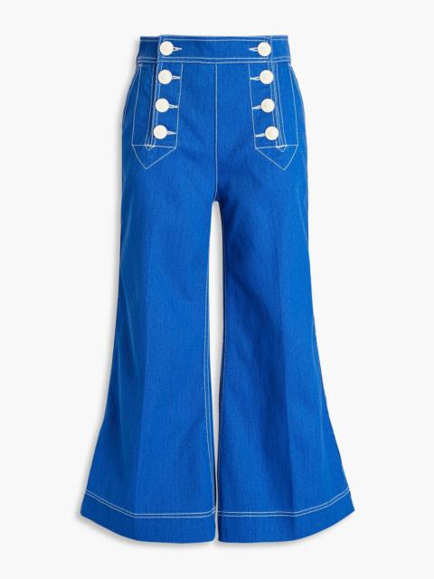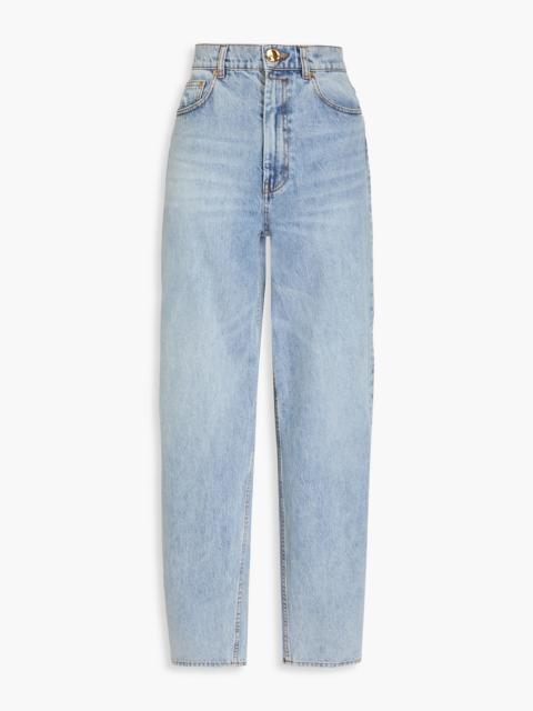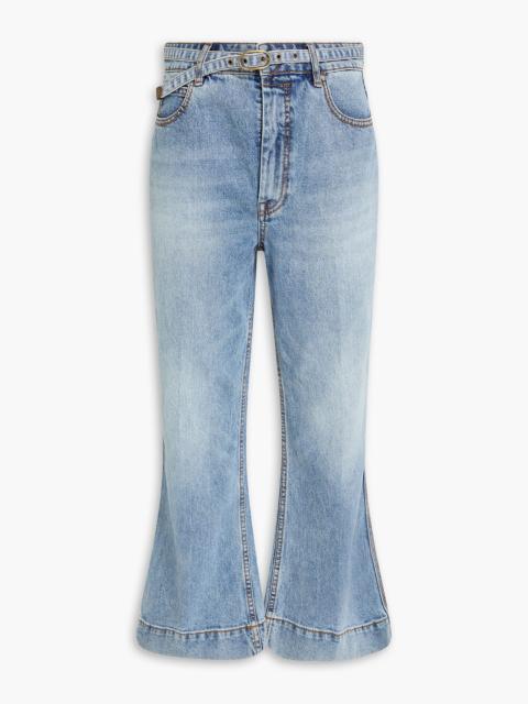 Cropped broderie anglaise-trimmed mid-rise tapered jeans