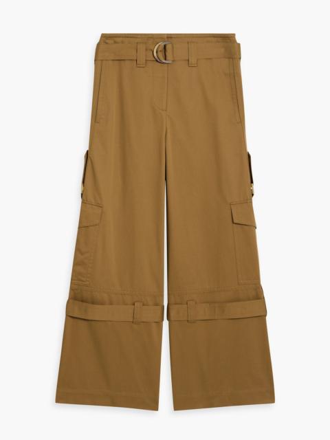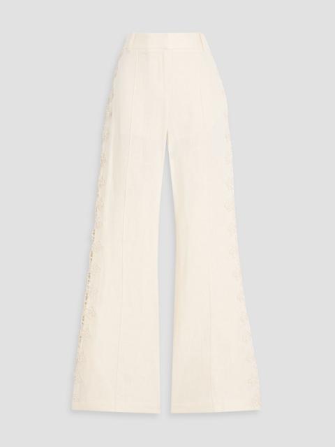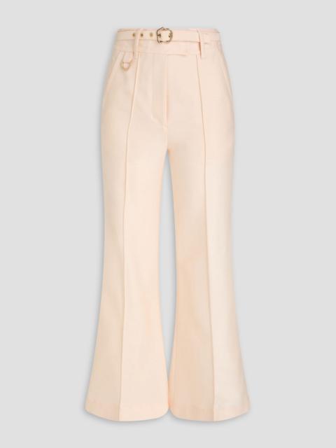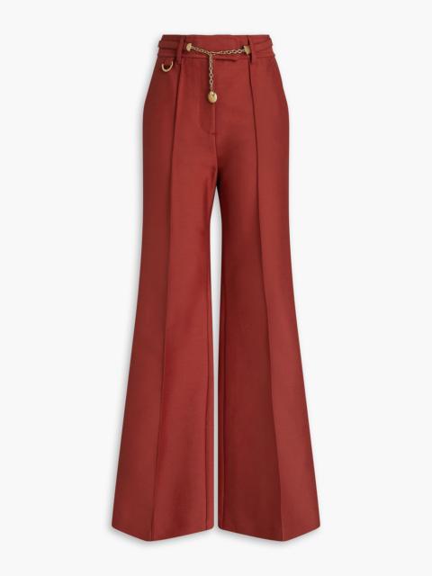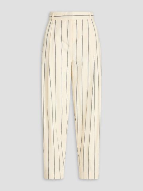 Pleated pinstriped herringbone wool and cotton-blend wide-leg pants