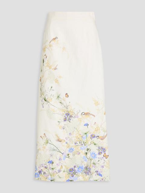 Floral-print linen maxi skirt