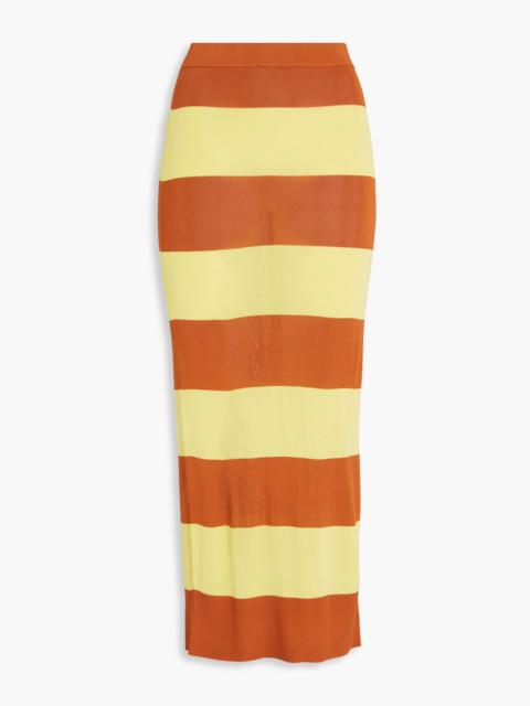 Striped jacquard-knit midi skirt