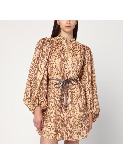 Zimmermann Leopard Print Short Dress In Linen Women