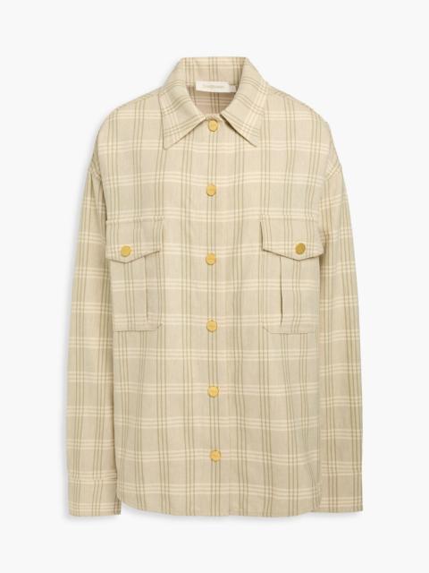 Oversized checked cotton and linen-blend shirt