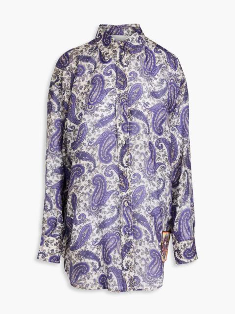 Appliquéd paisley-print silk shirt