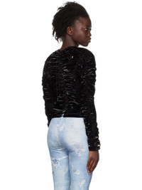Nylon taffeta T-shirt. Ruching throughout. · Round neck · Concealed zip vent at side seam · Lace-up closure at back · Unlined Supplier color: Black 100% polyamide.