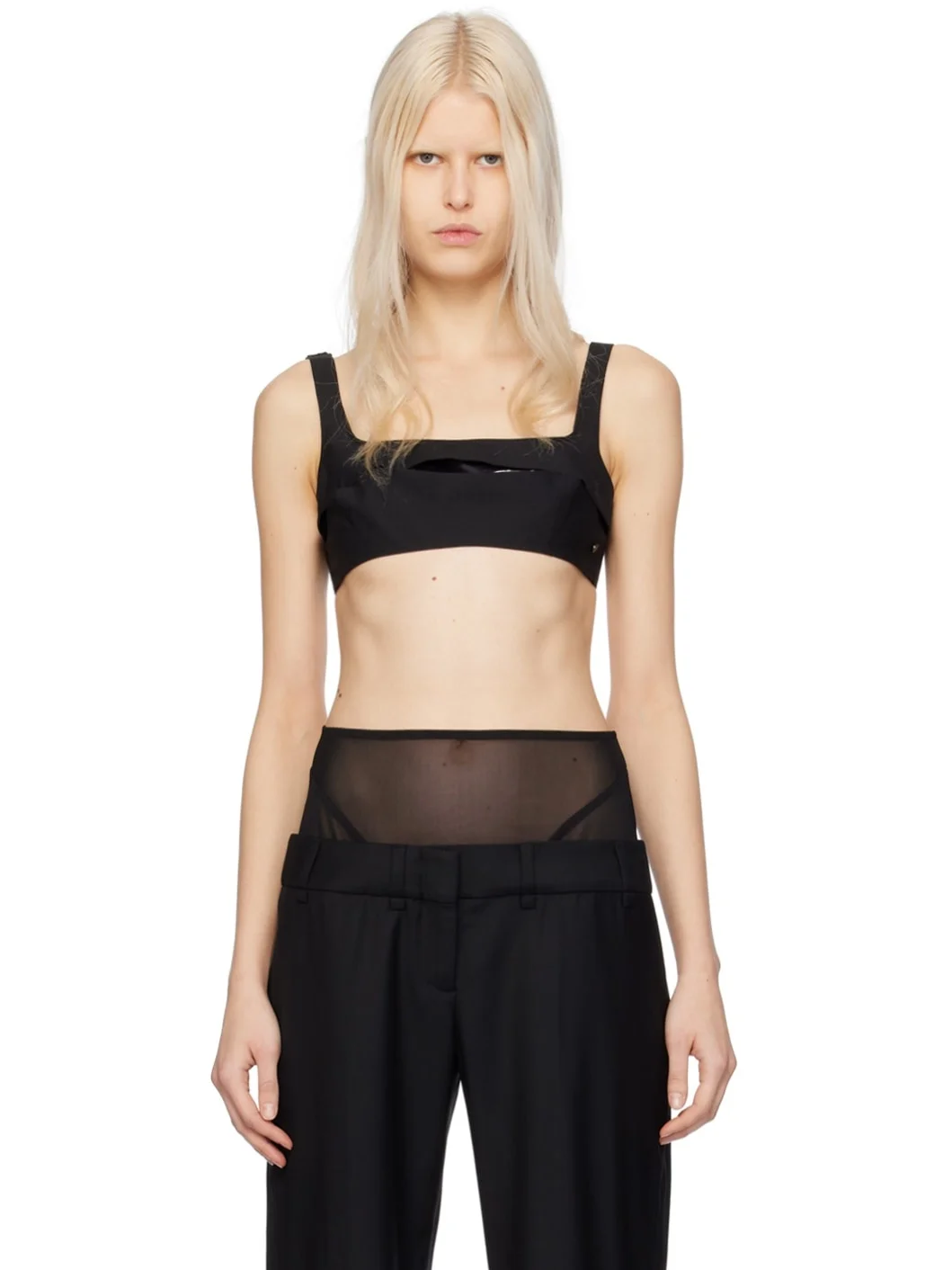 Bonded wool jersey bralette. · Square neck · Cutout and logo hardware at front · Adjustable shoulder straps · Hook-eye fastening at back · Full twill lining Supplier color: Black Body: 100% wool. Lining: 95% polyamide, 5% polyurethane. Made in Estonia 232843F111001