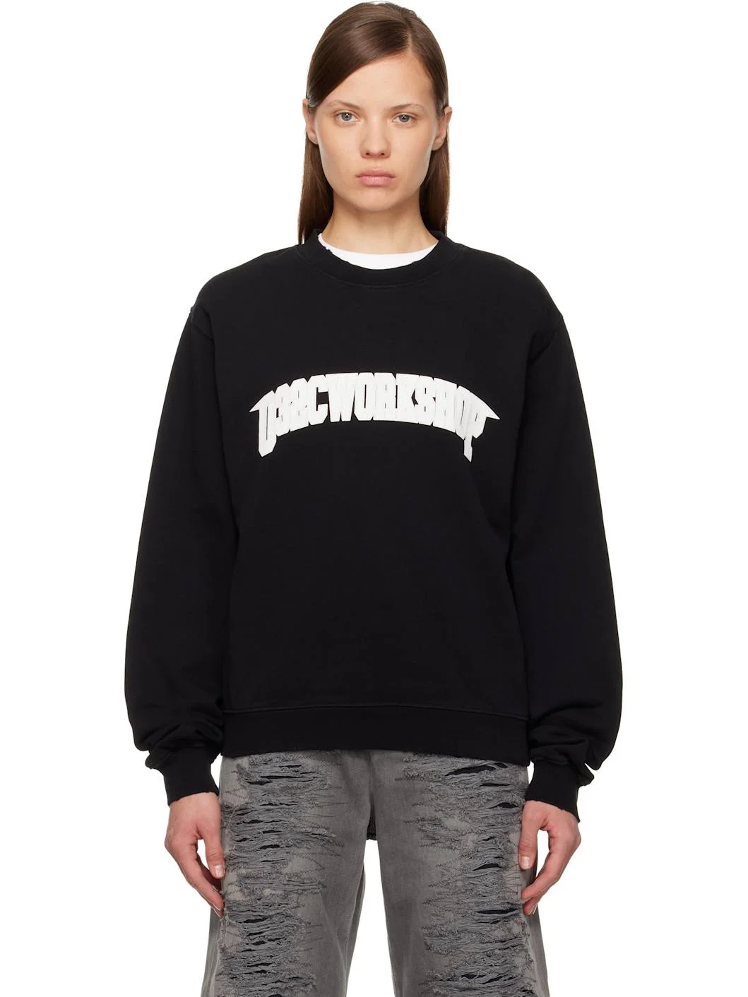 Organic cotton French terry sweater. · Stonewashed · Distressing at rib-knit crewneck, hem, and cuffs · Logo bonded and printed at chest · Dropped shoulders · Text printed at back · Logo embroidered at back hem Supplier color: Washed black 100% organic cotton. Made in Turkey 252843F096003