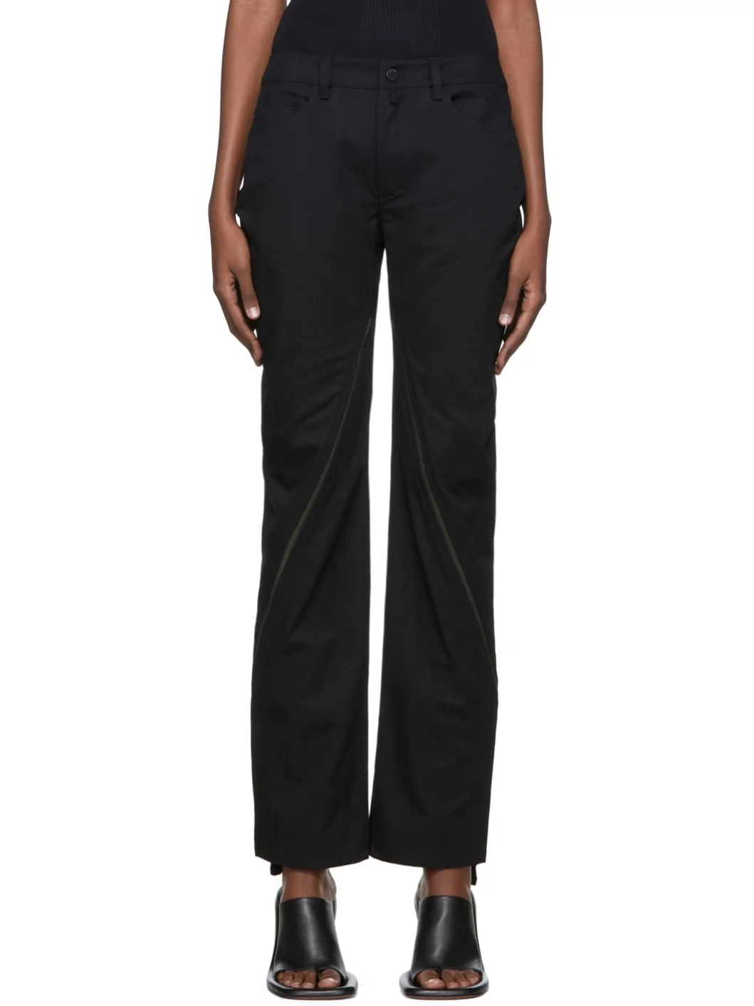 Organic cotton twill trousers. · Belt loops · Zip-fly · Logo hardware at back · Five-pocket styling · Zippered vents at front and back Supplier color: Black 100% organic cotton. Made in Poland 221843F087002