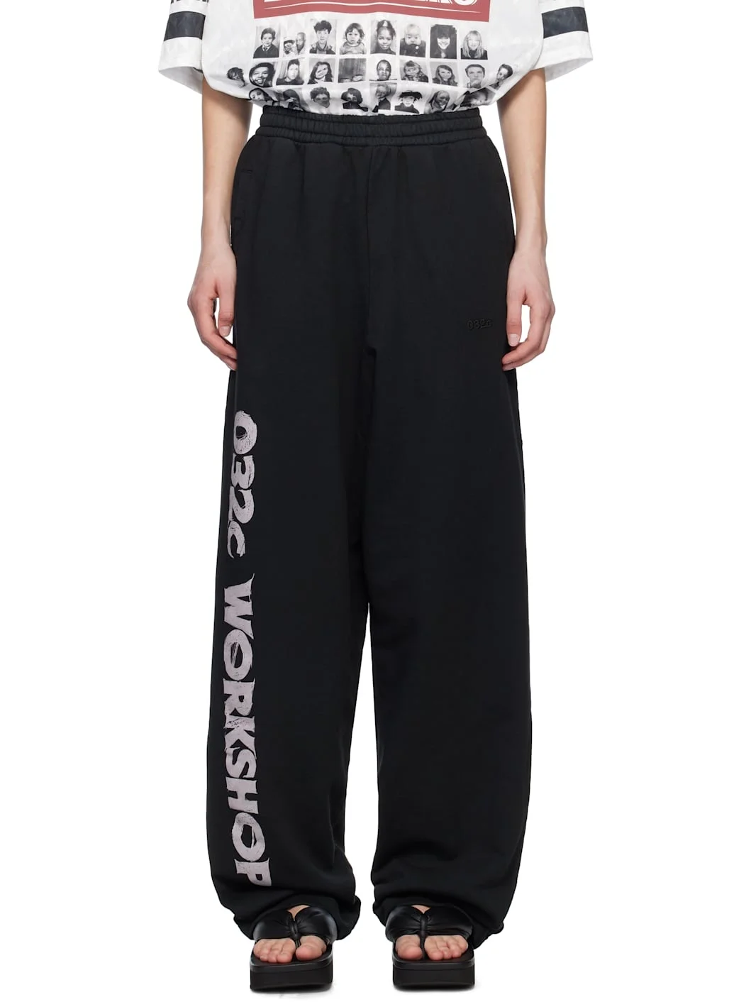 Organic cotton French terry lounge pants. Subtle distressing throughout. · Concealed drawstring at elasticized waistband · Two-pocket styling · Logo embroidered at front · Logo and text printed at leg Supplier color: Faded black 100% organic cotton. Made in Turkey 251843F086001