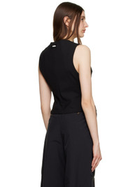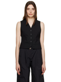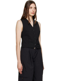 Plain-woven stretch wool and bonded stretch nylon jersey vest. · Y-neck · Button closure · Darts at front · Rubberized logo patch at back · Partially lined Supplier color: Black