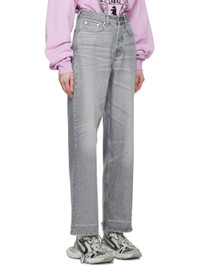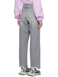 Loose-fit straight-leg non-stretch organic cotton denim jeans. Enzyme-washed, stonewashed, and laser-treated. · Fading and whiskering throughout · Belt loops · Five-pocket styling · Button-fly · Distressing at cuffs and back pocket · Logo hardware at back · Logo-engraved silver-tone hardware Supplier color: Washed grey 100% organic cotton. Made in Italy 241843F069001