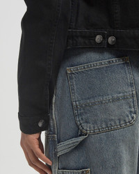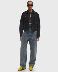 The DOWN TO EARTH BOXY DENIM JACKET by 032c is a new denim jacket silhouette with a boxy fit, creases on the front sleeves and 032c logo embroidery. The loose cut ensures a comfortable fit and can be combined in a variety of ways. - Button placket at the front - Buttoned breast pockets - In washed black, paired with an 032c leather patch This item is partly made of certified, recycled and sustainable materials, reducing the global amount of waste and conserving primary raw materials. Discover a wide range of sustainable items now at BSTN! Article Number: S25-URD-1921-050-W Gender: Women Color: WASHED BLACK Material: 100% Cotton