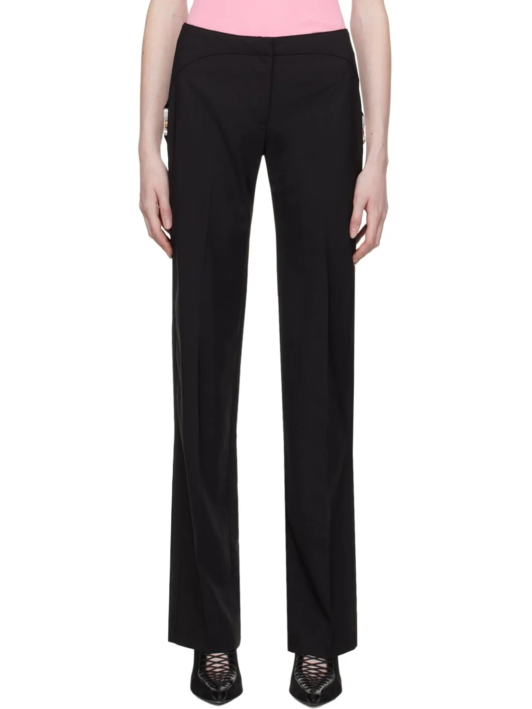 Stretch plain-woven wool- and polyester- blend trousers. · Zip-fly · Creased legs · Press-release hardware at outseams · Logo-engraved silver-tone hardware Supplier color: Black 54% wool, 45% polyester, 1% elastane. Made in Italy 231776F087005