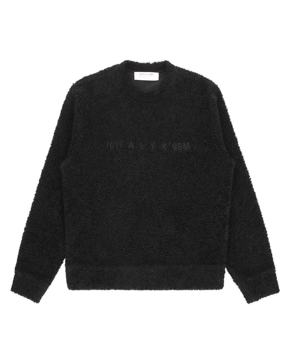 Crewneck sweater in boucle fabric with front logo. Color: Black - Made in Italy - 100% Polyester - True to size - Model is wearing size M