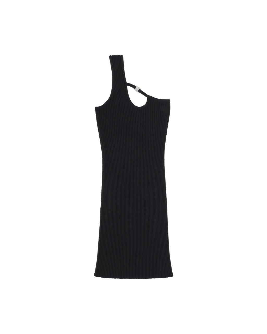 One shoulder midi dress in knit with signature mini roallercoaster buckle detail. Color: Black - Made in Italy - 89% Viscose, 8% Polyamide, 3% Elastane - True to size - Model is wearing size S