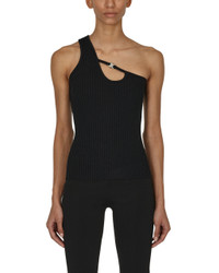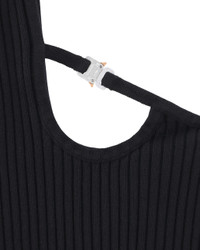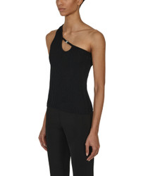 One shoulder knit top with signature mini buckle detail on the back. Color: Black - Made in Italy - 89% Viscose, 8% Polyamide, 3% Elastane - True to size - Model is wearing size S