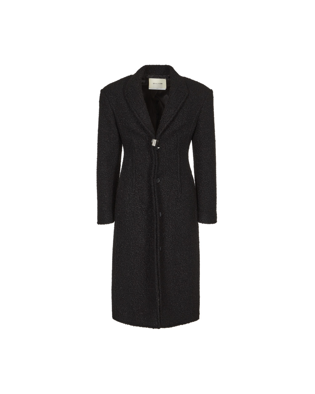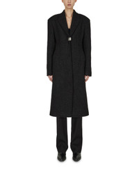 Long wool coat with front metal clasp closure. Color: Black - Made in Italy - SELF FABRIC: 100% Polyester - LINING: 100% Cupro - POCKET LINING: 100% Cotton - True to size - Model is wearing size S