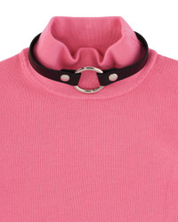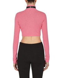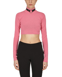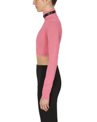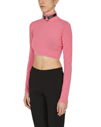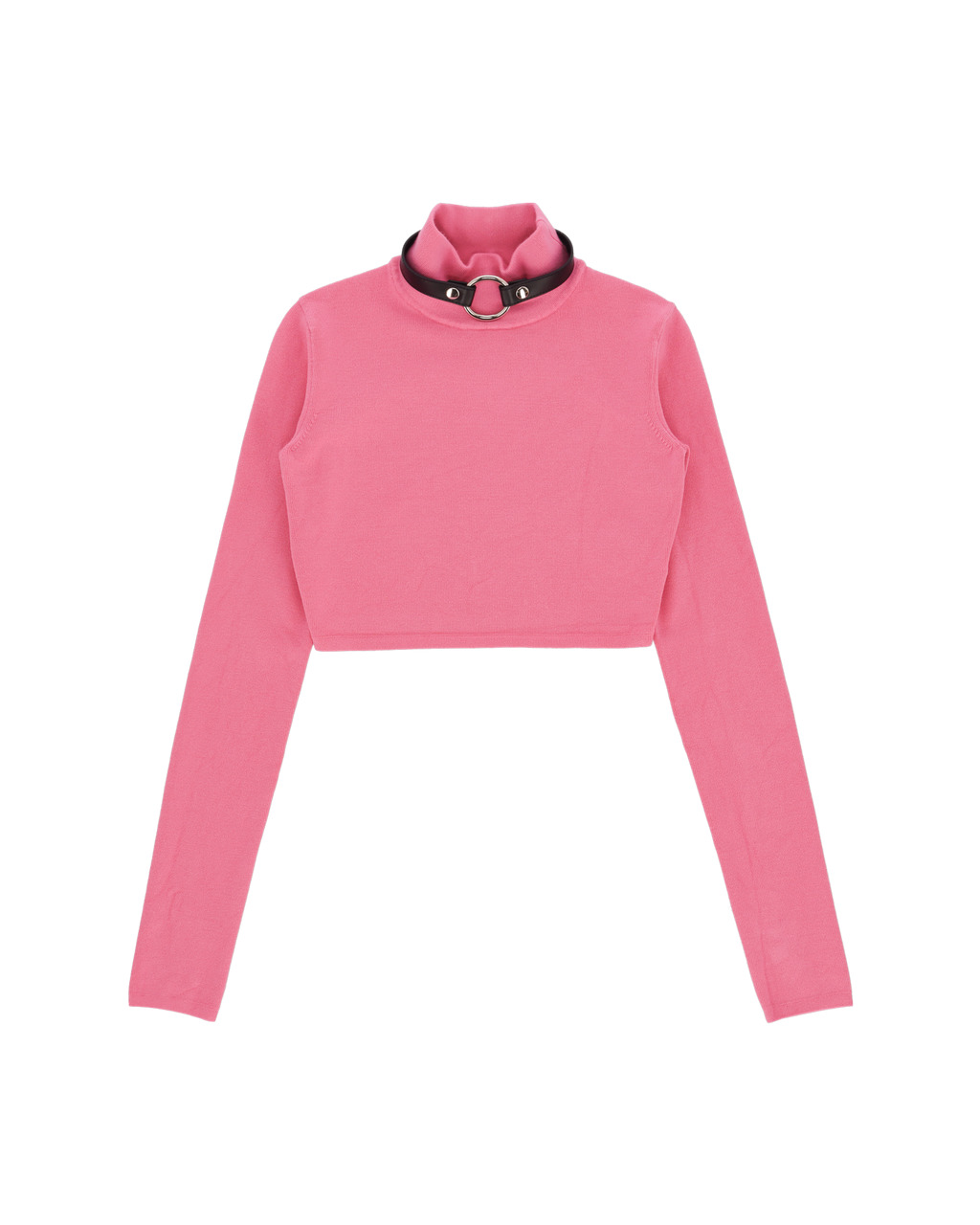 Cropped knitted turtleneck top, with neck ring chocker. Color: Pink - Self: 89% Vi, 8% Pa, 3% Ea