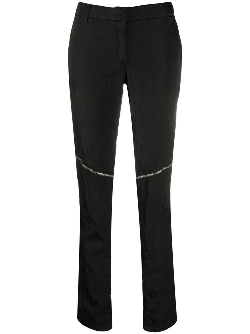 front zipped skinny trousers Black front zipped skinny trousers from 1017 ALYX 9SM featuring a high waist, belt loops, a hook and zip fly, back pockets and a regular length. Made in Italy Composition Polyamide 100% SIZE & FIT Model measurements Height 5 ft 9 in(1.76 m) Bust/Chest 32.28 in(82 cm) Hips 35.43 in(90 cm) Waist 24.01 in(61 cm) FittingInformation This piece fits true to size. We recommend you get your regular size Cut for a slim fit Made with a lightweight non-stretch fabric Washing instructions Machine Wash