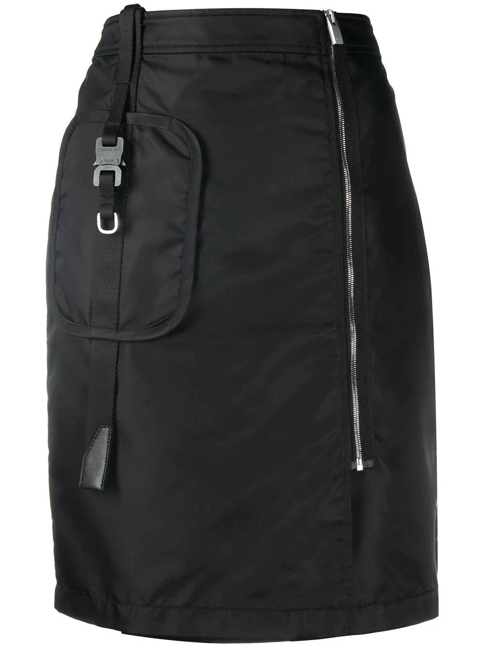 high-waisted zip-up skirt Highlights - Black - Logo patch to the rear - High waist - Off-centre front fastening Imported Composition Polyamide 100% SIZE & FIT Model measurements Height 5 ft 10 in(1.77 m) Bust/Chest 33.46 in(85 cm) Hips 35.43 in(90 cm) Waist 26.77 in(68 cm) FittingInformation This piece fits true to size. We recommend you get your regular size Cut for a slim fit Made with a lightweight non-stretch fabric Washing instructions Hand Wash