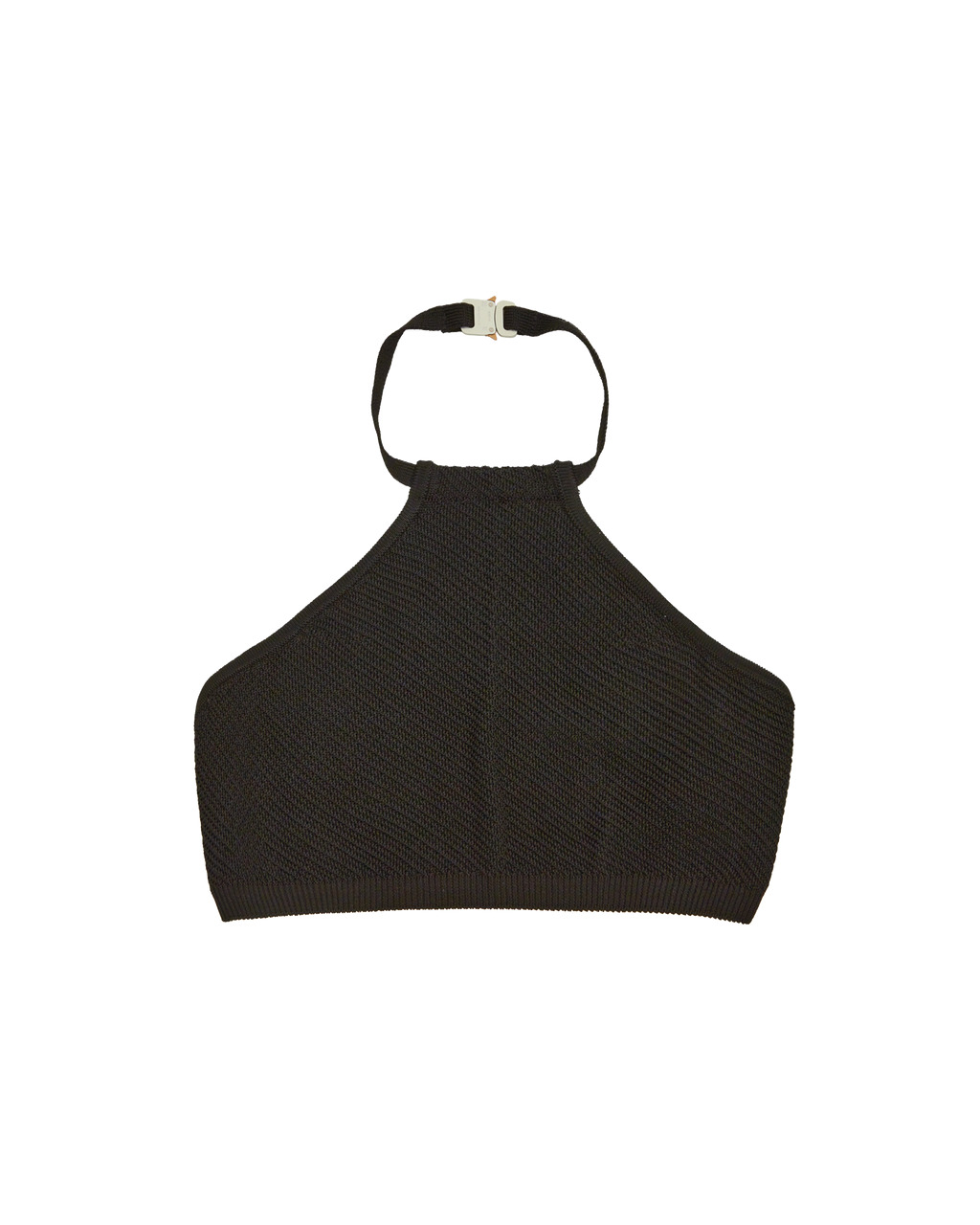 Knitted top with micro buckle closure. Color: Black - Self: 100% Viscose - Made in Italy