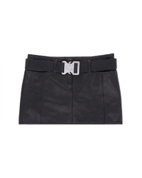 Runway featured leather mini skirt with integrated signature metal rollercoaster buckle. Color: Black