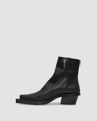 Leather ankle boots with angled-square toe and exaggerated welt. Colour: Black - Made in Italy - 100% Calf Leather - True to size