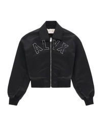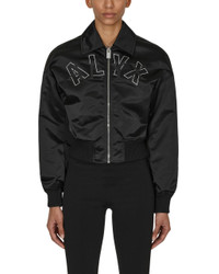 Front logo crop bomber jacket in nylon. Color: Black - Made in Italy - 100% Nylon - True to size - Model is wearing size S