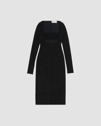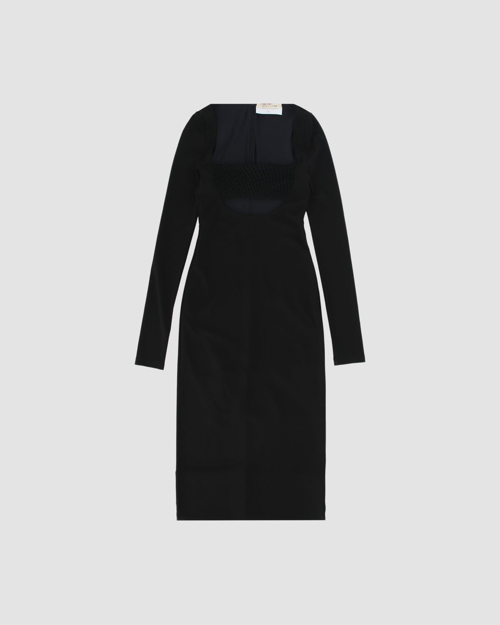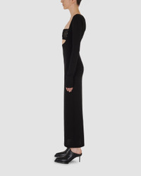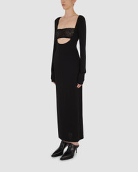 Runway featured long dress with frontal cut out and front panel in macrame weave. Color: Black - 98% Viscose, 2% Elastane - True to size - Model is wearing size S