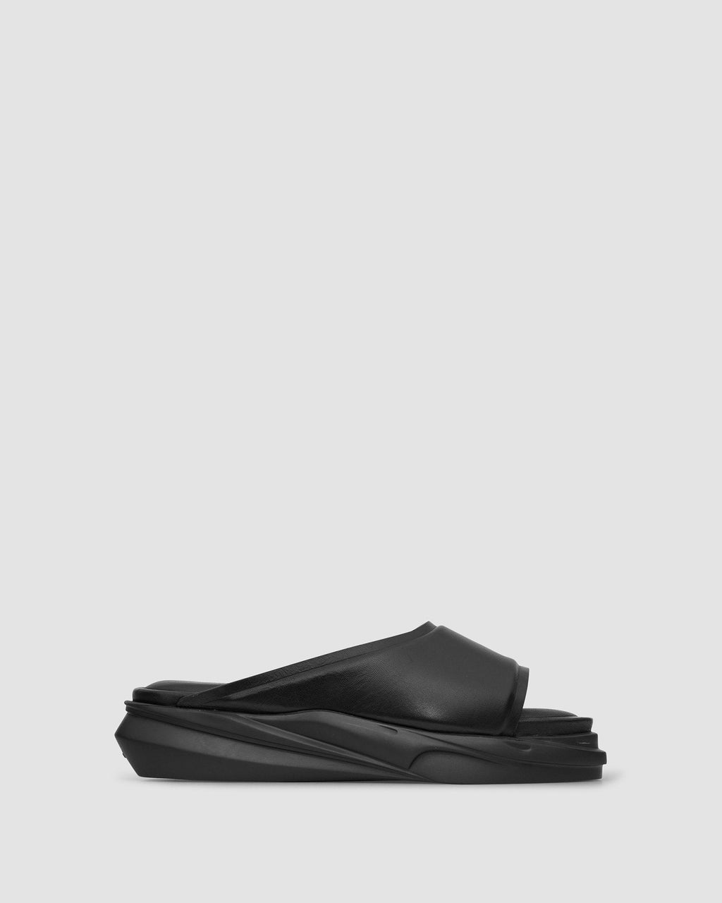 Alyx signature Mono slide featuring padded leather upper and Mono Hybrid sole in EVA. Color: Black - Made in Italy - 100% Calf - LINING : 50% Calf Leather, 50% Lamb Leather - SOLE : 100% EVA