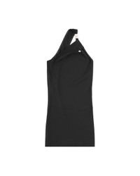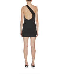 Short dress with one shoulder metal tube feature. Color: Black