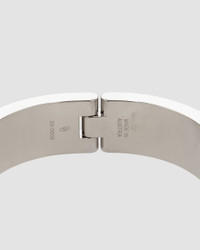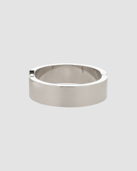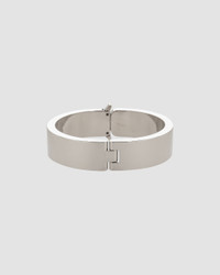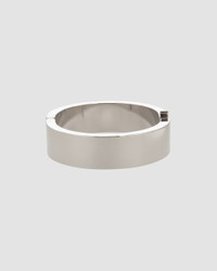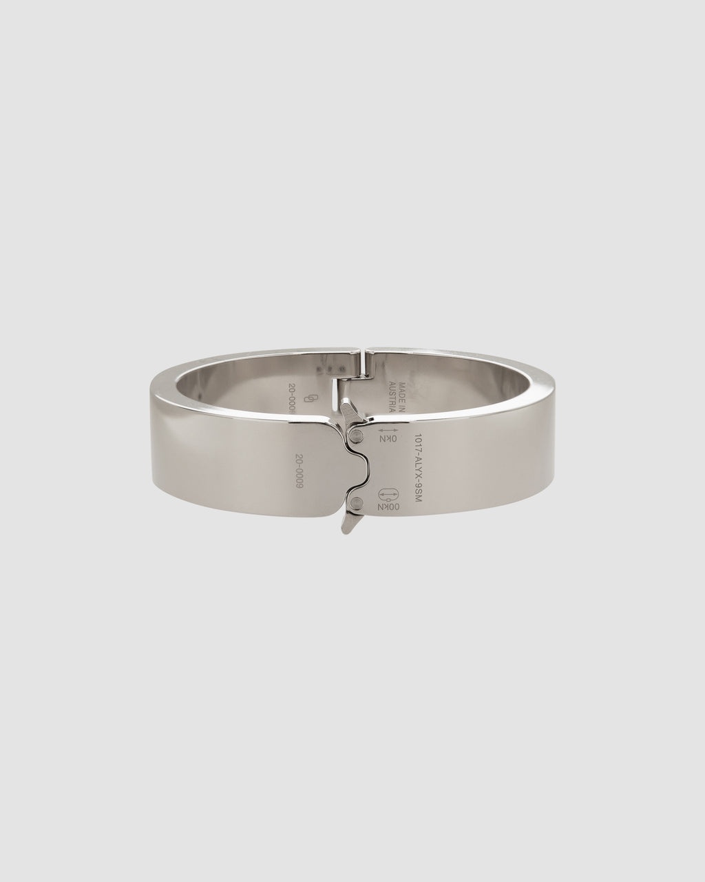 Platinum plated anodized aluminum cuff with lasered logo, hinge and buckle clasp for closure. Color: Platinum - 99% Brass Alloy, 1% Platinum Coat