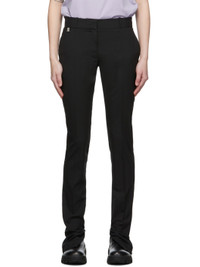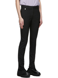 Straight-leg stretch plain-woven virgin wool-blend trousers in black. Signature logo-engraved hardware at front. · Mid-rise · Four-pocket styling · Belt loops at waistband · Central crease at legs · Zip vent at cuffs · Partial tonal cupro lining · Zip-fly · Silver-tone hardware Supplier color: Black 54% virgin wool, 45% polyester, 1% elastane.