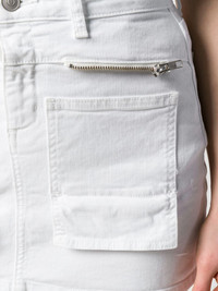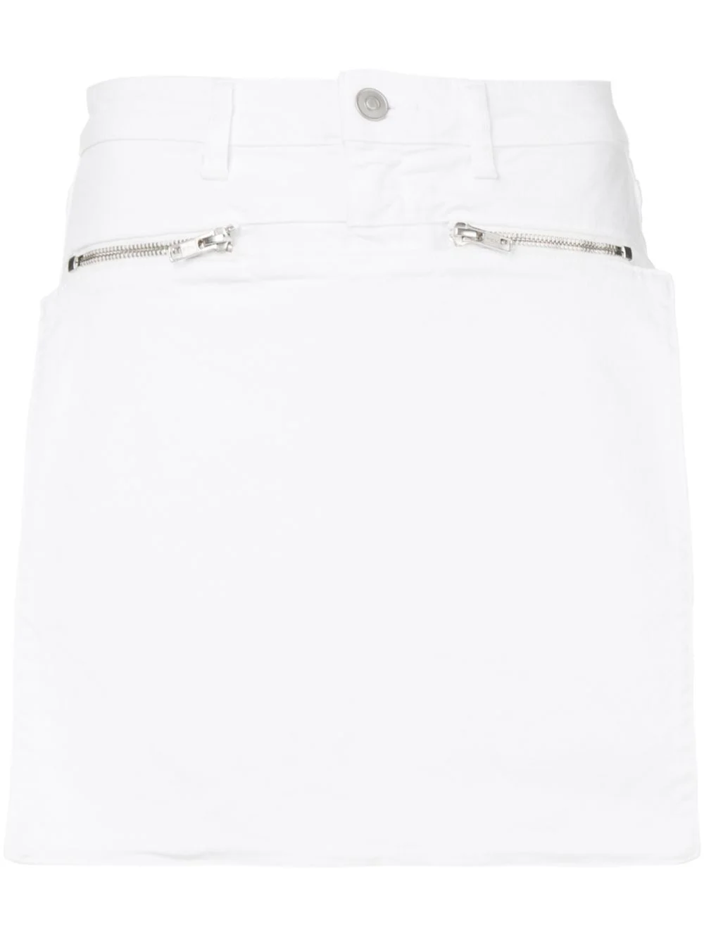 white denim skirt White cotton blend denim skirt from 1017 Alyx 9Sm featuring belt loops, a front button fastening, back pockets and oversized panel to the front with decorative zip details. Made in Italy Composition Cotton 98%, Spandex/Elastane 2% SIZE & FIT Model measurements Height 5 ft 9 in(1.76 m) Bust/Chest 33.07 in(84 cm) Hips 35.03 in(89 cm) Waist 24.4 in(62 cm) Washing instructions Dry Clean Only