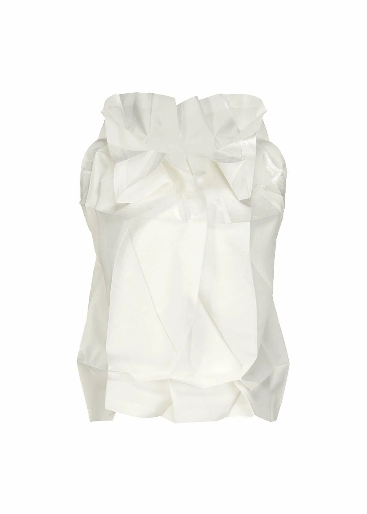 Top made from recycled polyester fabric. By applying foil while folded flat, the foil scatters and creates shadows when worn. It has a flat design when folded. This product has foil crimped onto the surface, so the way the foil comes out will vary slightly from piece to piece. Thank you for your understanding in advance.